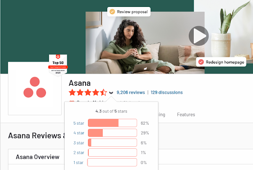 Asana has been collecting super excellent reviews across various platforms. On G2, it has received a rating of 4.3; on Capterra and GetApp, it has received a stunning rating of 4.5.