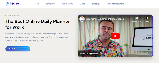 The platform offers customizable templates and a daily calendar to help you map out your daily routine and hourly schedule. On top of that, Friday’s intuitive design integrates seamlessly with other popular task management apps, making it a versatile choice for those who need a daily basis tool for staying organized and goal-oriented.