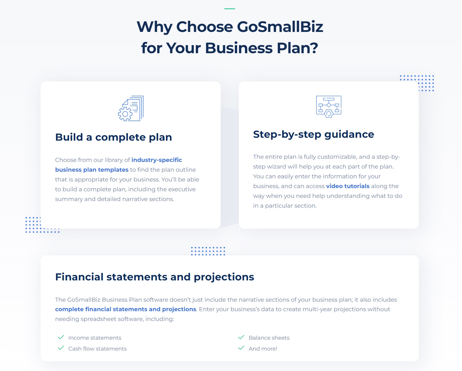 GoSmallBiz has emerged as one of the most discussed business planning software on multiple forums, and for a good reason. It extends knowledge and support to its users besides business plan creation and website development.