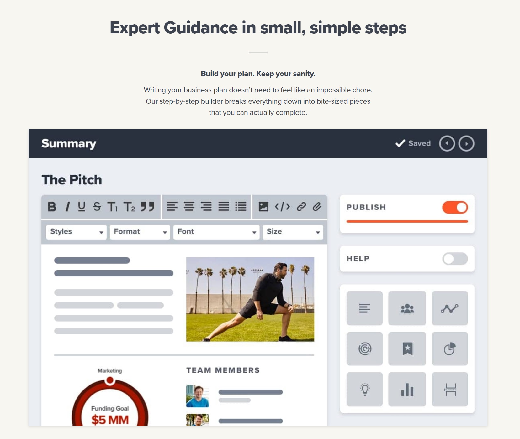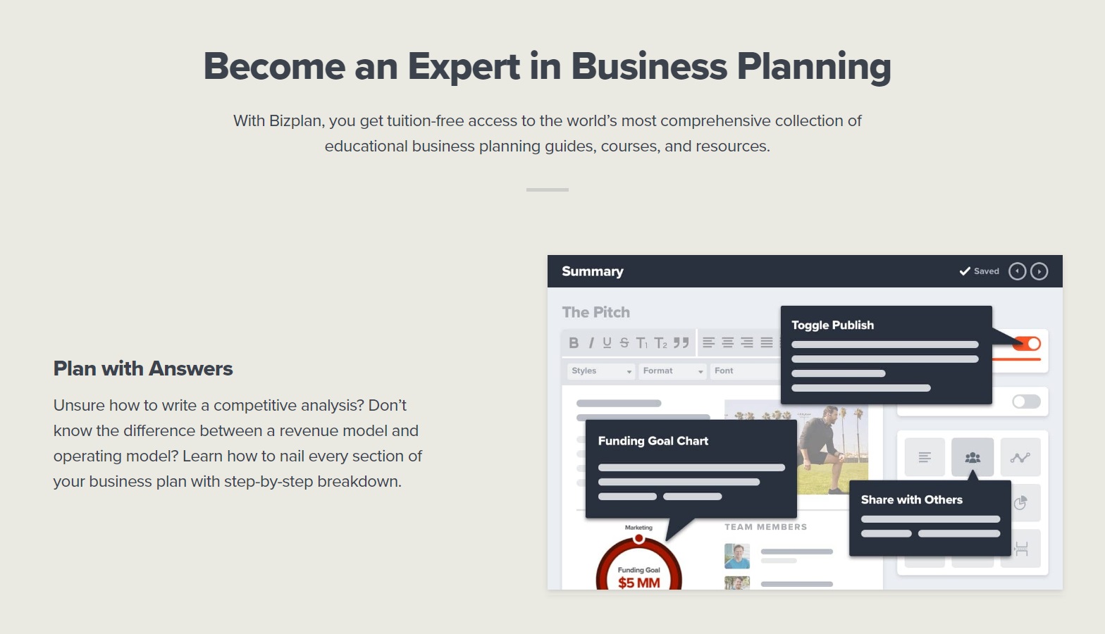 BizPlan offers all the necessary guidance to create a good business plan. Its education feature stands out from the rest and provides knowledge on every aspect of business planning.