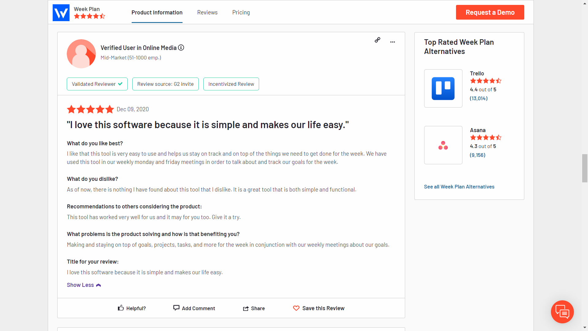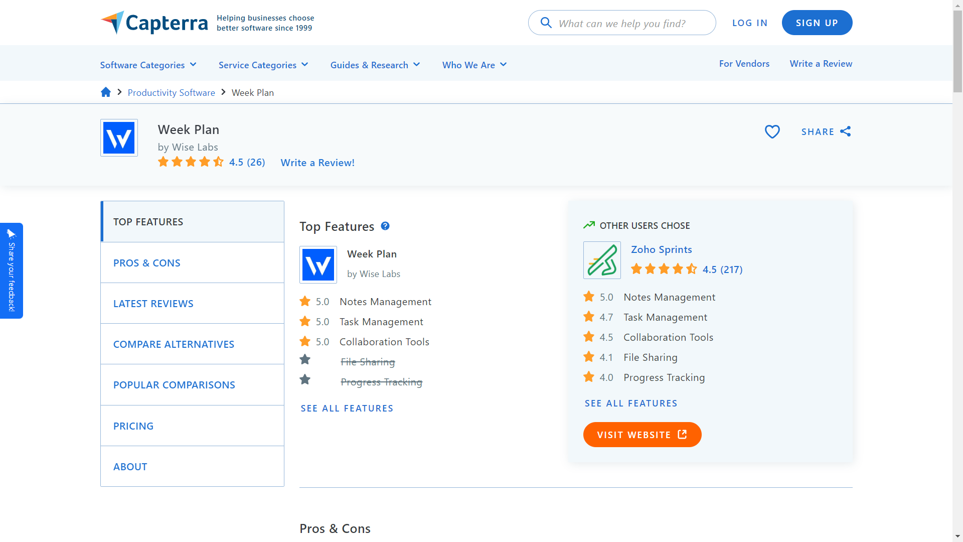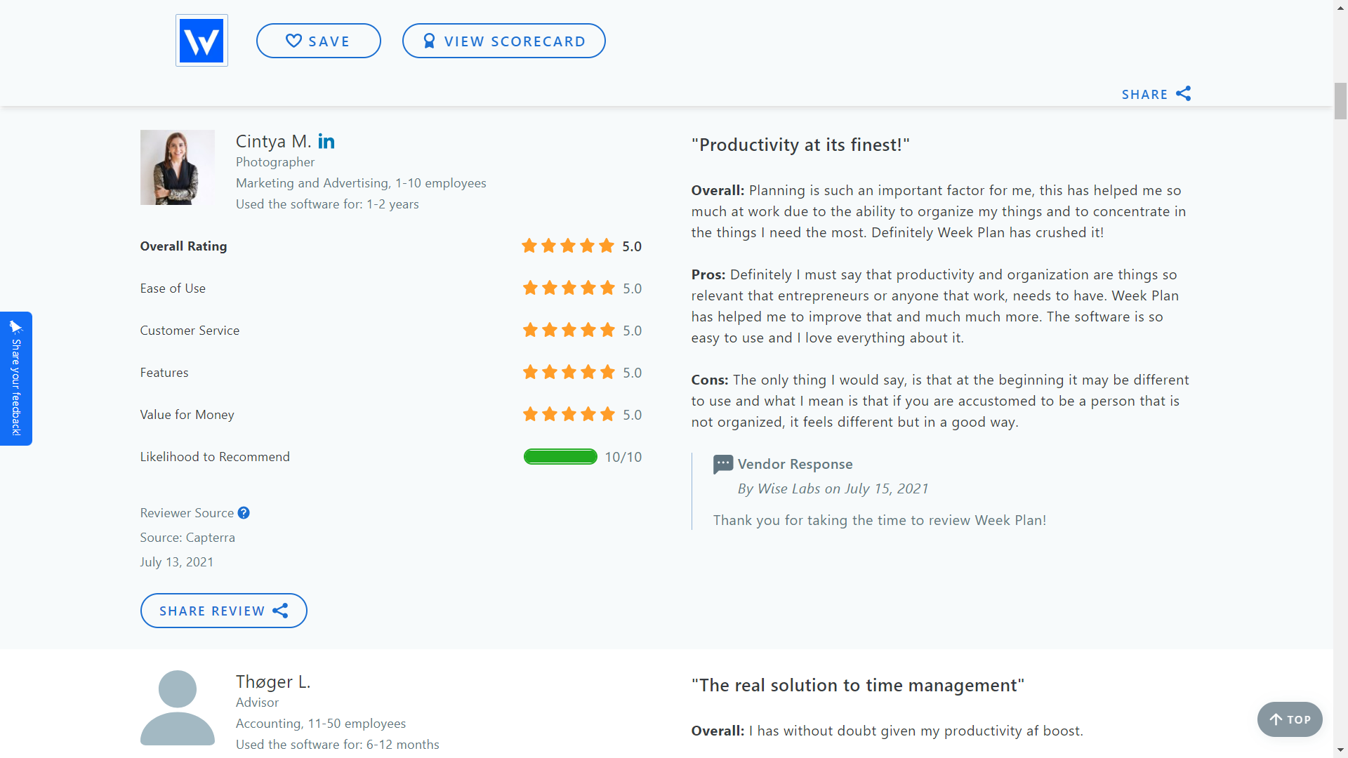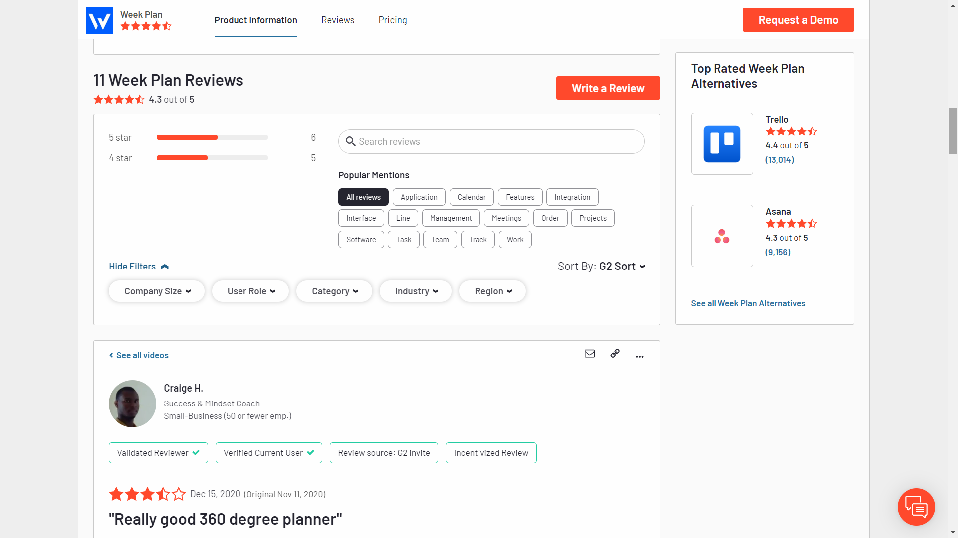 Week Plan is rated 4.5 on Capterra and 4.3 on G2.