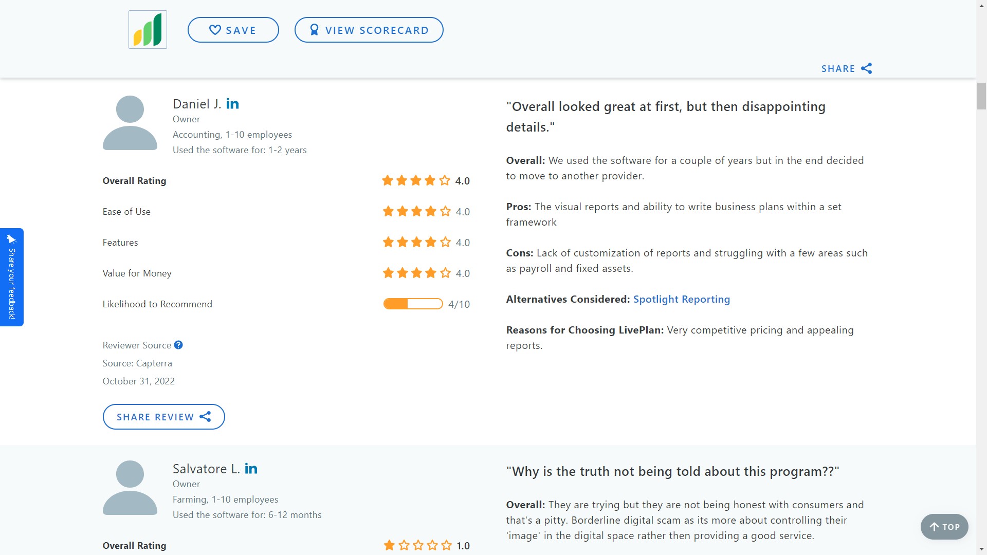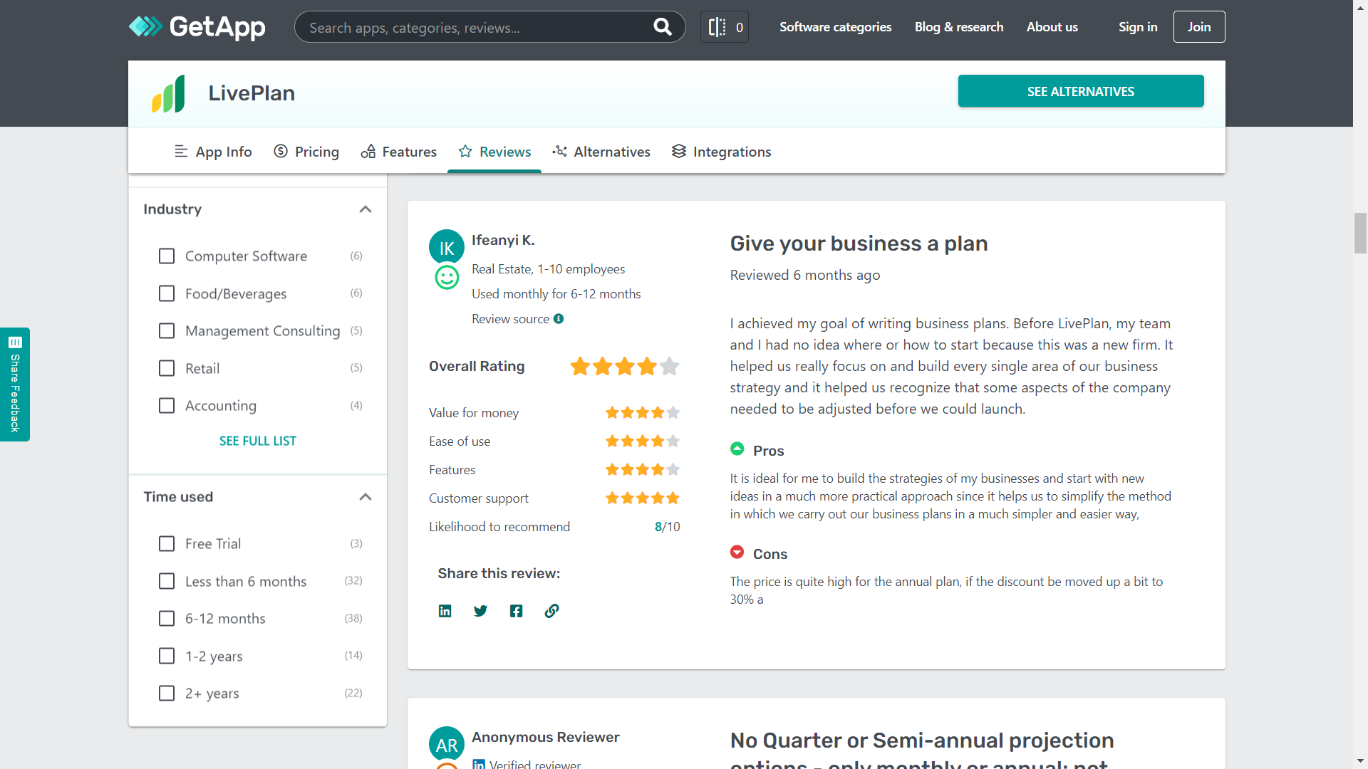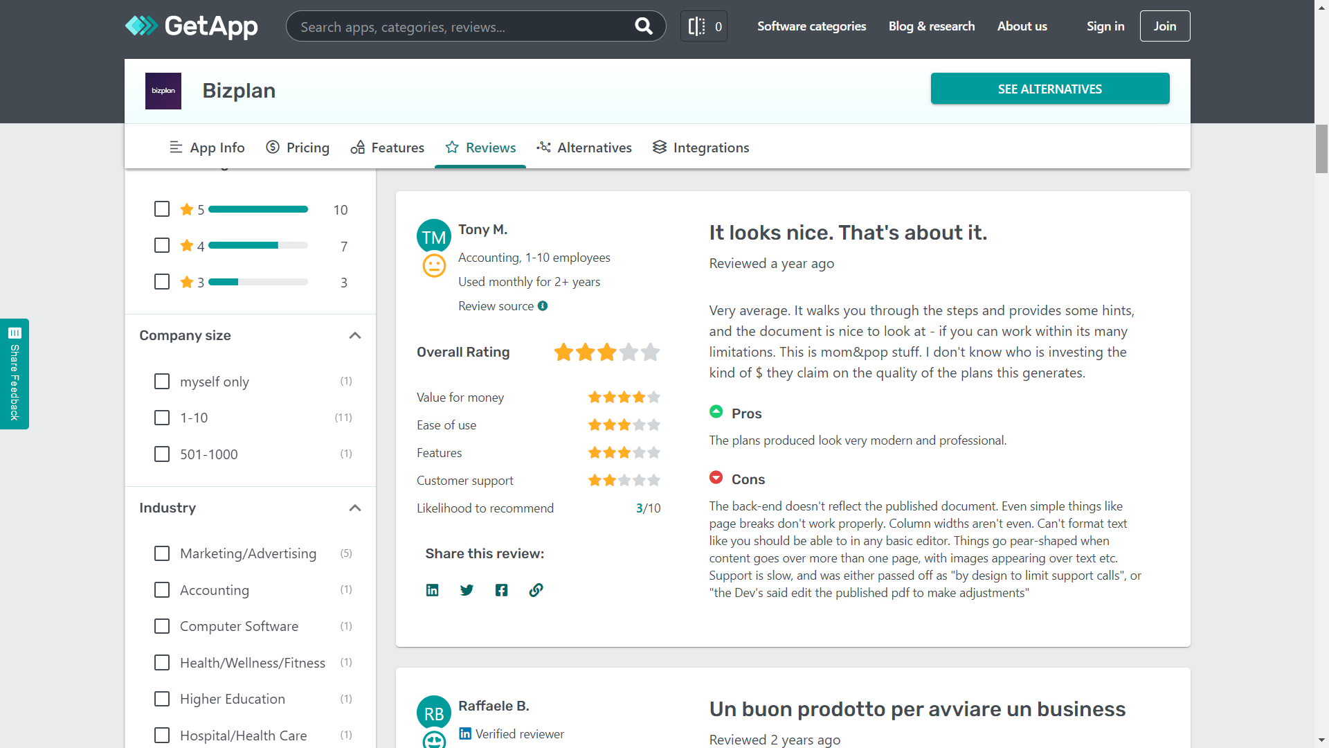 BizPlan is rated 4.4 on Capterra and GetApp.