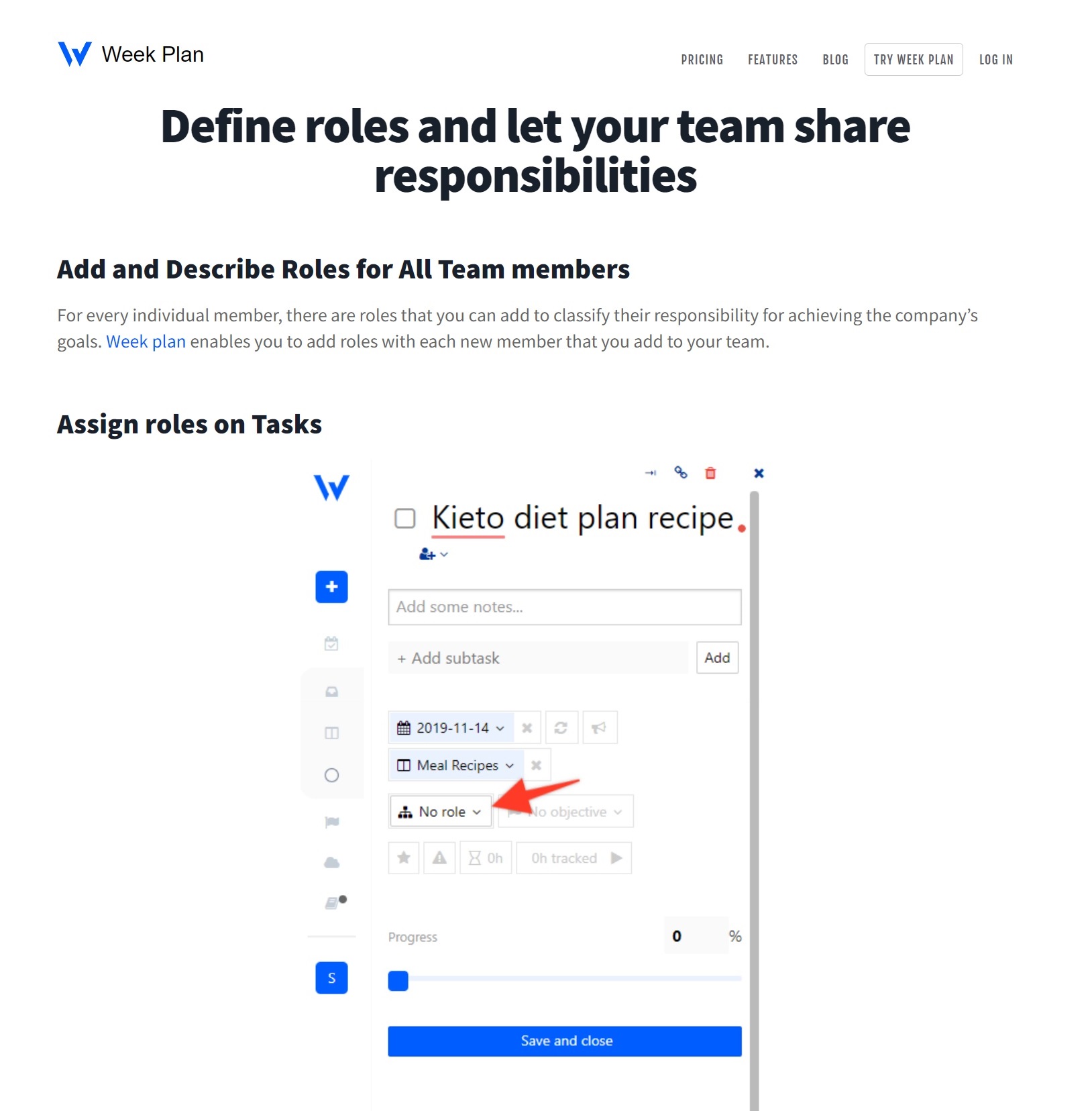Week Plan’s role assignment is advanced and sophisticated, with the option of adding roles with set objectives. Employees and team leaders need to understand the goal behind a task and how it brings value to the business.