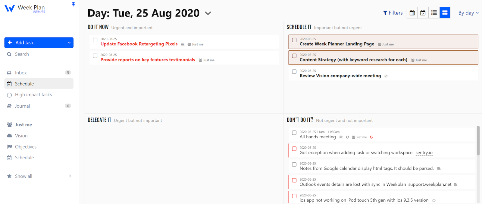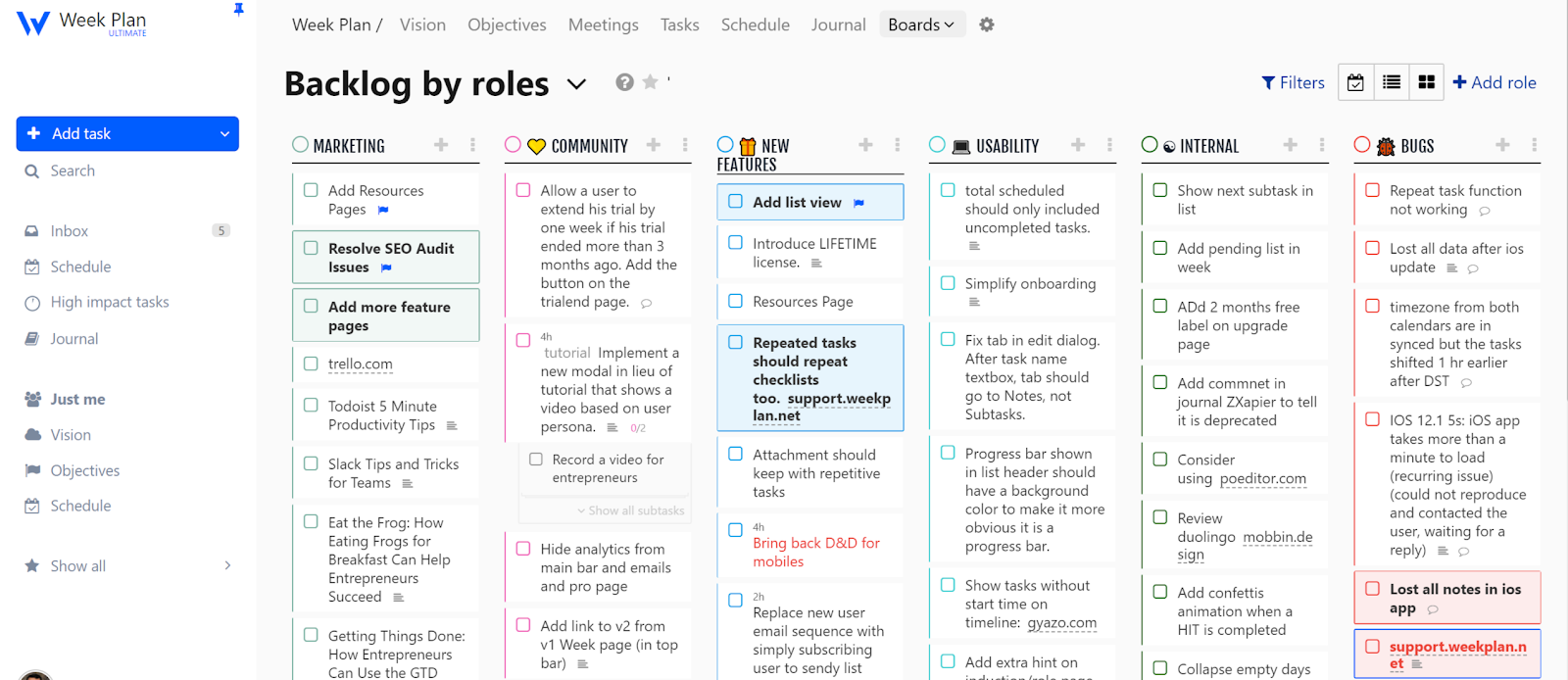 Our calendar planner software organizes your goals and tasks, so you end the week with less on your plate and more work done. Your tasks are organized according to roles and responsibilities, as well as importance and urgency. Allowing you to focus on your high priority tasks and achieve your goals successfully. WeekPlan is a fusion of popular productivity techniques and strategies to help you become more focused and productive.