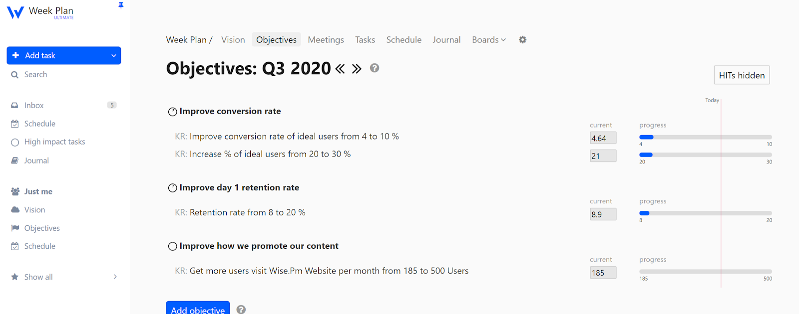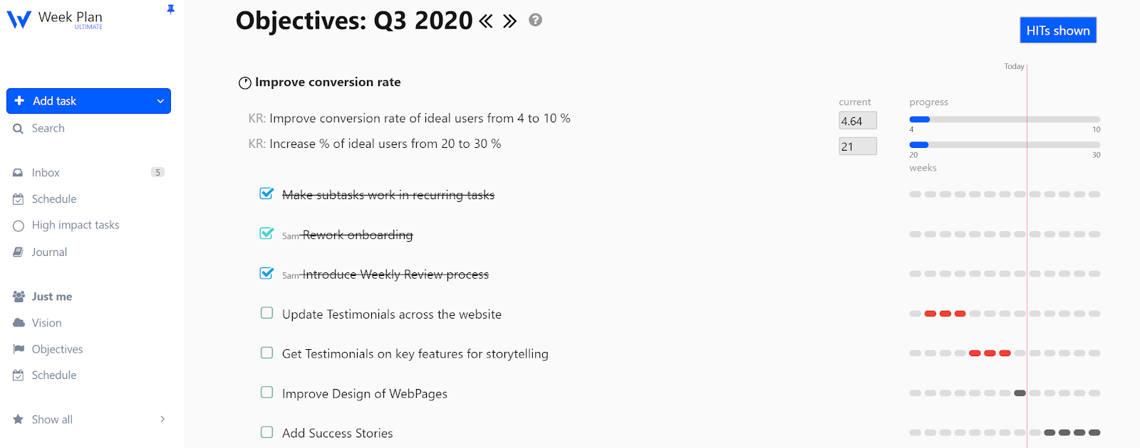 Our calendar planner software provides you with the luxury to create and keep high impact tasks insight all the time. It also helps users achieve their dreams by inspiring creativity and supporting goal-setting. High Impact Tasks are the ones that you just can’t afford to neglect and contribute immensely to bigger goals. They usually come from the top items in your Backlog but can also come directly from the Inbox. HITs help you progress on each of your objectives or role vision. The HITs can be grouped either by roles or by objectives.