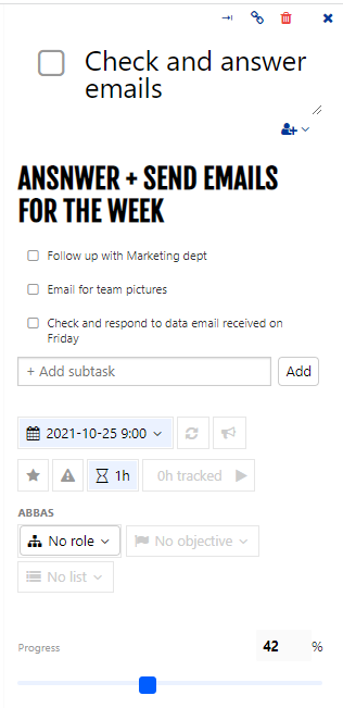 Once you have scheduled the hours of your day, you can break it down even further for greater control and getting more things done! Week Plan gives you the option to divide a task into its constituents, so you never miss a thing.